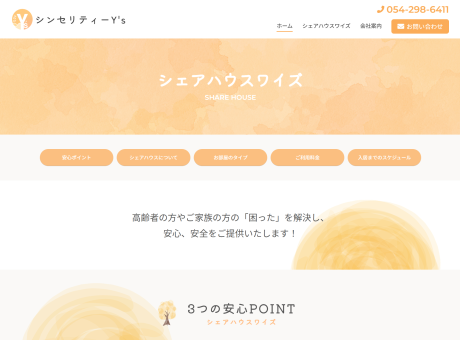 静岡市葵区瀬名にあるシェアハウスワイズ様のHP制作をさせていただきました。